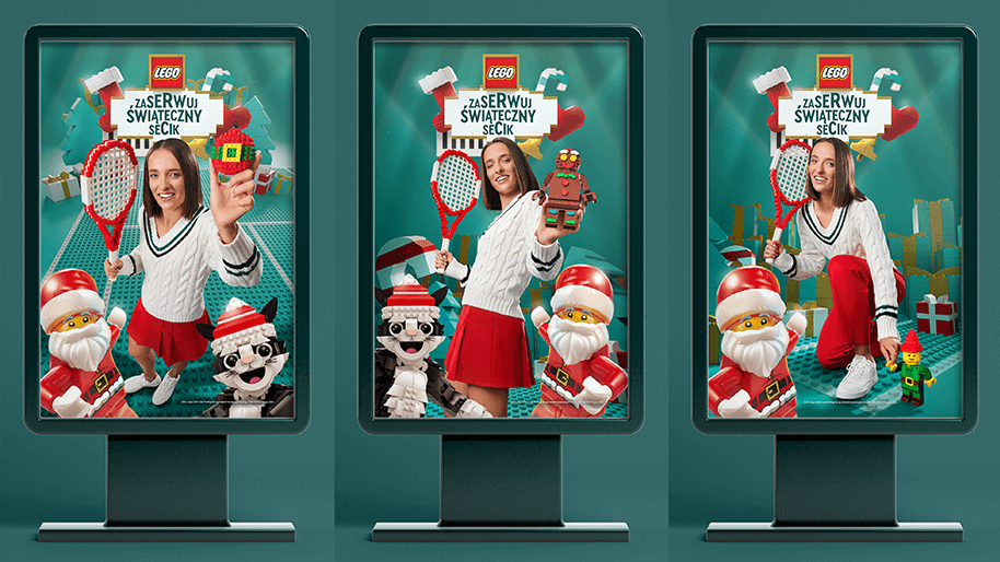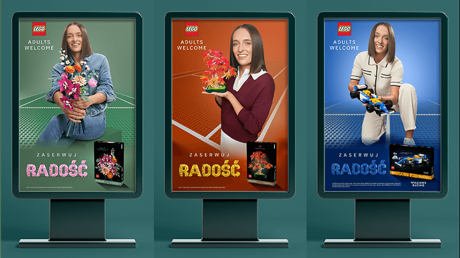 Iga Świątek łączy cechy idealnie pasujące do marki LEGO: skupienie, precyzję i radość z procesu, co stało się fundamentem całego konceptu kreatywnego. Dzięki temu obie kampanie mogły funkcjonować osobno, jednocześnie tworząc spójny przekaz – jedna bardziej aspiracyjna i skierowana do dorosłych, mówiąca o „serwowaniu radości”, a druga lekka i świąteczna, zachęcająca do „zaserwowania seciku” klocków pod choinkę.