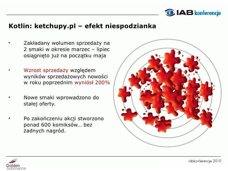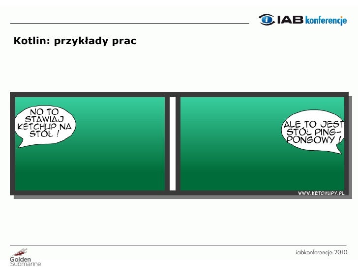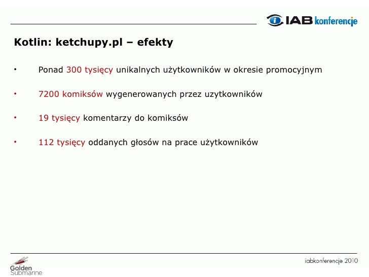 - 27. Kotlin: ketchupy.pl – efekt niespodzianka <ul><li>Zakładany wolumen sprzedaży na 2 smaki w okresie marzec – lipiec osiągnięto już na początku maja </li></ul><ul><li>Wzrost sprzedaży względem wyników sprzedażowych nowości w roku poprzednim wyniósł 200% </li></ul><ul><li>Nowe smaki wprowadzono do stałej oferty. </li></ul><ul><li>Po zakończeniu akcji stworzono ponad 600 komiksów… bez żadnych nagród. </li></ul>