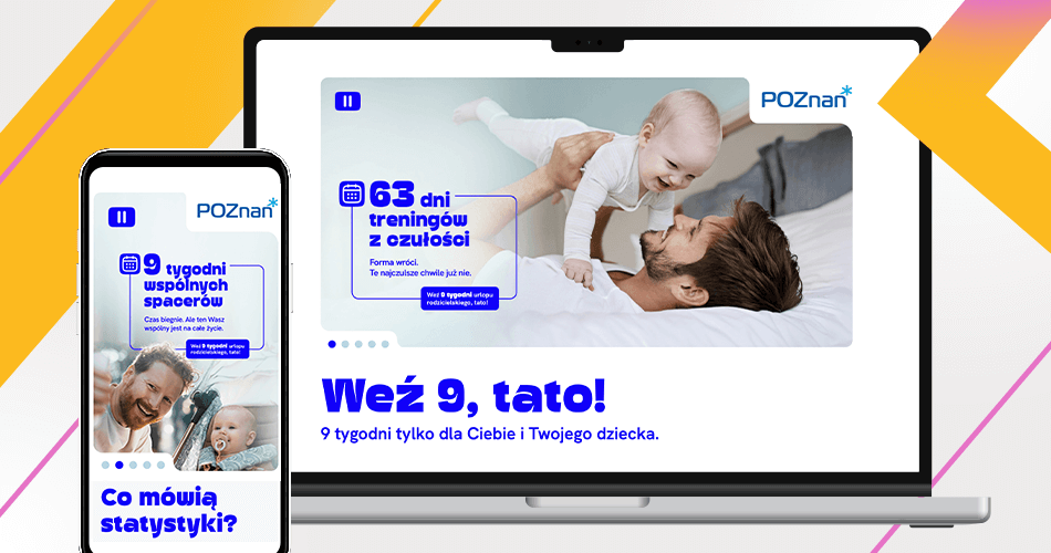 Zachęcenie ojców do aktywnego udziału w życiu rodzinnym to wyzwanie, które wymaga skutecznej komunikacji. Dlatego Miasto Poznań zainicjowało kampanię społeczną „Weź 9, tato”, której celem jest promocja korzystania przez ojców z 9 tygodni urlopu rodzicielskiego. Wspólnie z naszym zespołem stworzyliśmy stronę internetową oraz materiały wspierające ideę kampanii.