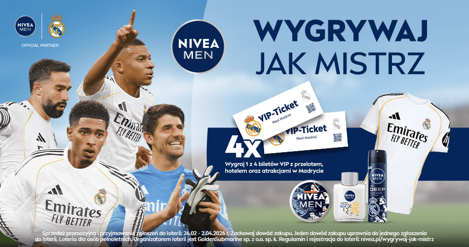 Loteria trwa do 02.04.2026 roku do godz. 23:59. Więcej szczegółów na stronie: www.nivea.pl/wygrywaj-jak-mistrz