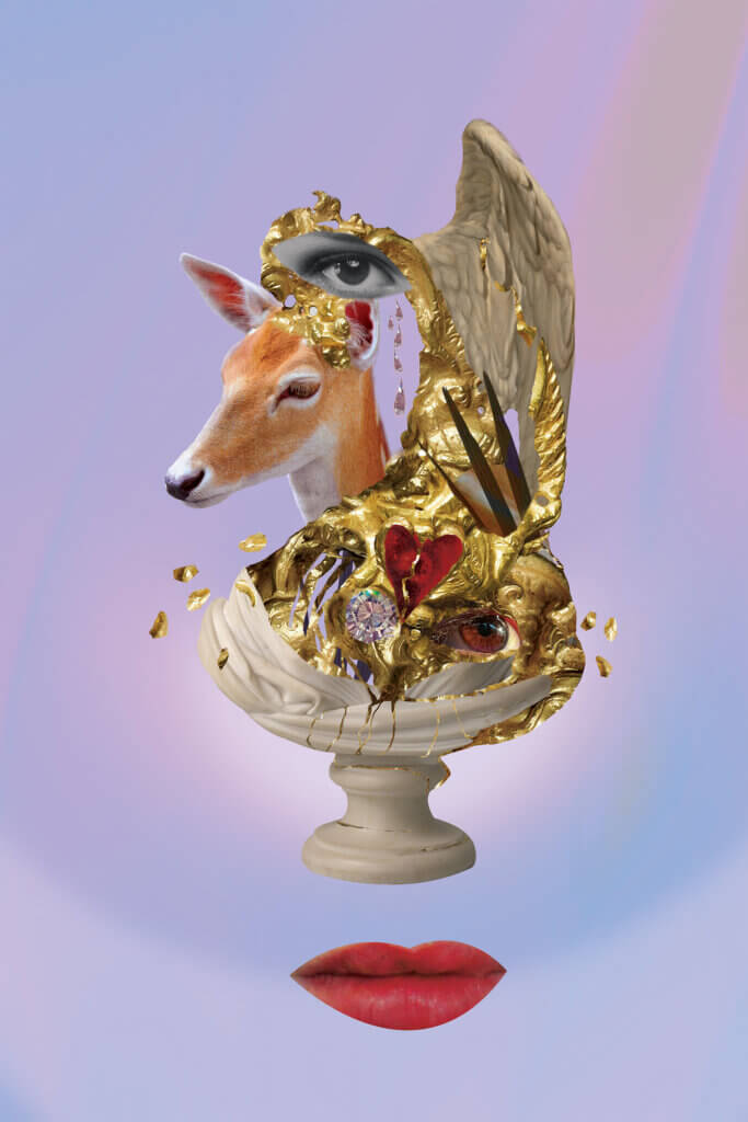 W kolażu zawarłam kilka ukrytych znaczeń. Każdy element, który składa się na rzeźbę ma swoją symbolikę. Skrzydło jest symbolem wolności i przekraczania ograniczeń. Wizerunek oka ma ogromną ilość znaczeń – w tym przypadku chciałam również nawiązać do powiedzenia „sarnie oczy”, które są wielkie i brązowe, o łagodnym i czujnym spojrzeniu. Diament jest o wyjątkowości, a łzy nawiązują znów do wrażliwości i empatii, ale też i siły jaka drzemie w wyrażaniu emocji.